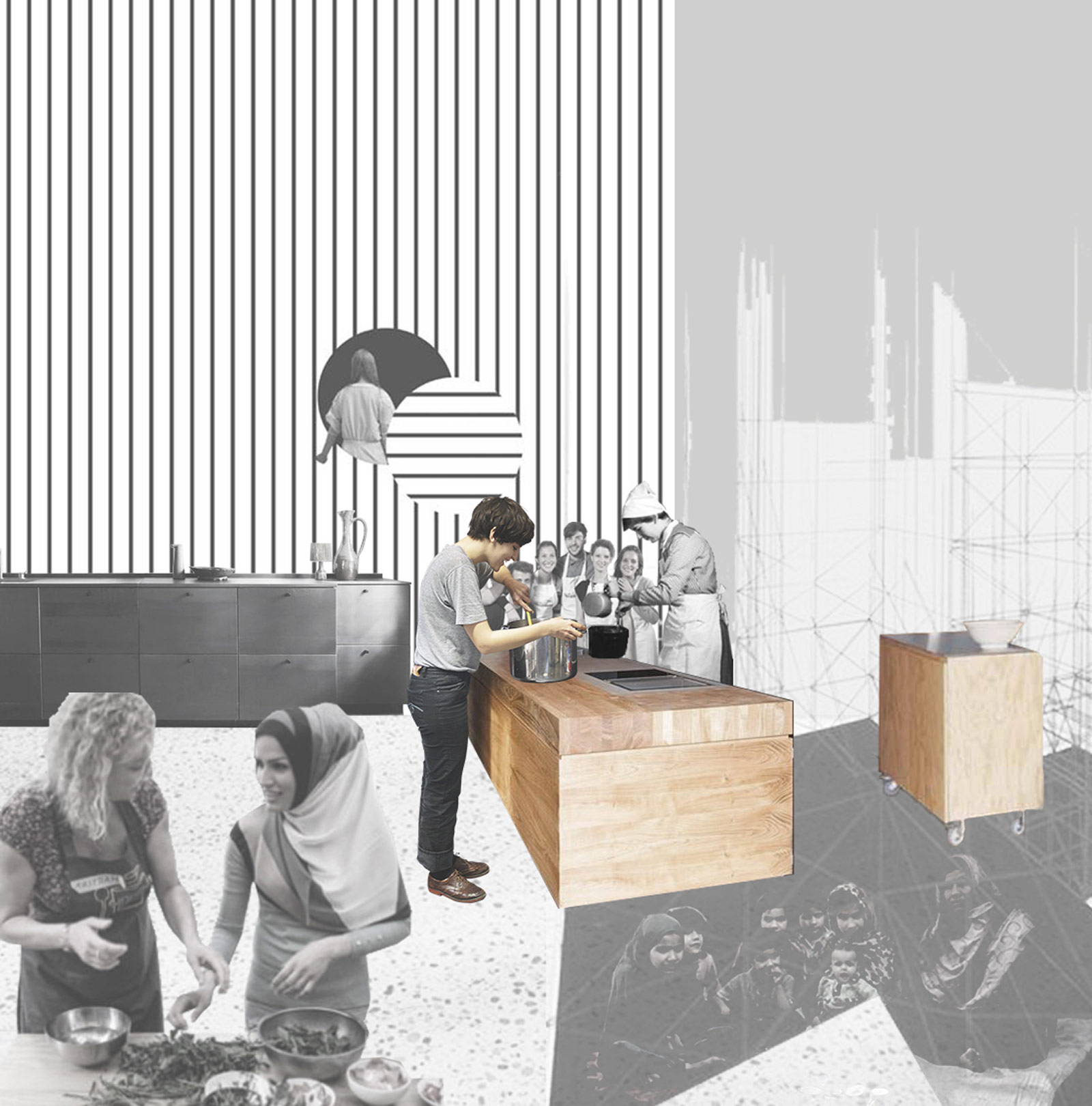 Das ‹‹frank›› schafft einen öffentlichen Ort, wo jung und alt, Flüchtling oder Einheimischer, Stadt- oder Dorfbewohner sich begegnen können. Begegnungen sollen durch die Tätigkeit des Kochens und Essens gefördert werden. Getreu dem Motto ‹‹Inklusion geht durch den Magen››, bildet die Küche, sowie die Tätigkeit des Kochens den konzeptionellen und räumlichen Mittelpunkt des ‹‹frank››. Der Raum am Züricher Beatenplatz 2 zeichnet sich durch eine Architektur in der Architektur aus, welche das Unter- und Erdgeschoss zu einer öffentlichen Küche, einer Markthalle verbindet. Die eingesetzte Architektur adaptiert die vorhandene Raumstruktur im Innern des Gebäudes, wodurch drei Ebenen bzw. drei Bereiche entstehen. Die Kochinseln der untersten Ebene bilden den zentralen Ort des ‹‹frank››. Hier begegnet man sich an den wöchentlichen Kochabenden, den Kochkursen sowie den Kulturabenden. Tagsüber bieten die verschiedenen Kochinseln einen Arbeitsplatz für interessierte Flüchtlinge und Einheimische, welche eine Leidenschaft fürs Kochen hegen und ihre Esskultur an den Mann und die Frau bringen wollen.