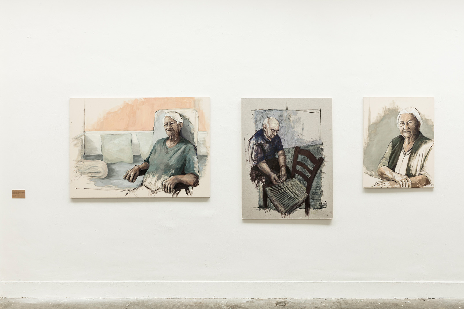 2017; Spuren des Lebens – Lucia, 2017, Öl und Acryl auf Leinwand, 100 × 140 × 2,5 cm; Spuren des Lebens – «U siggiaru» (der Stuhlflicker), 2017, Öl und Acryl auf Karton, 120 × 90 × 2,5 cm; Spuren des Lebens – Bethli, 2017, Öl und Acryl auf Leinwand, 90 × 70 × 2,5 cm