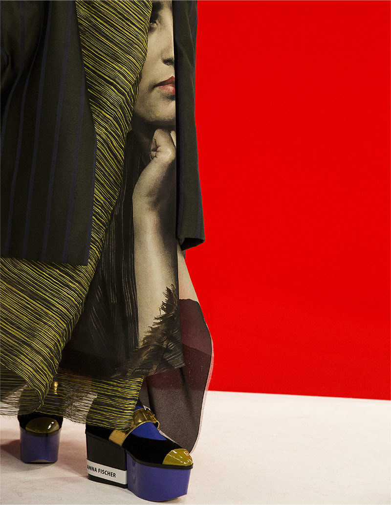In the women’s collection THE CERTAIN FEMALE, a painterly mood is juxtaposed with photographs of naked female bodies. The intensively colored collection deals with the theme of viewing the female body, investigating the influence of the flood of images upon perception. The collection considers images spatially, integrates them into the sculptural silhouettes, and creates a fragmentary aesthetic that redefines proportions and lines. The collection mesmerizes through colorfulness, intensity, and precision. Images of naked bodies form sharp cut lines for material changes and lie uncompelled around the body of the wearer. THE CERTAIN FEMALE is severity and poetry.
