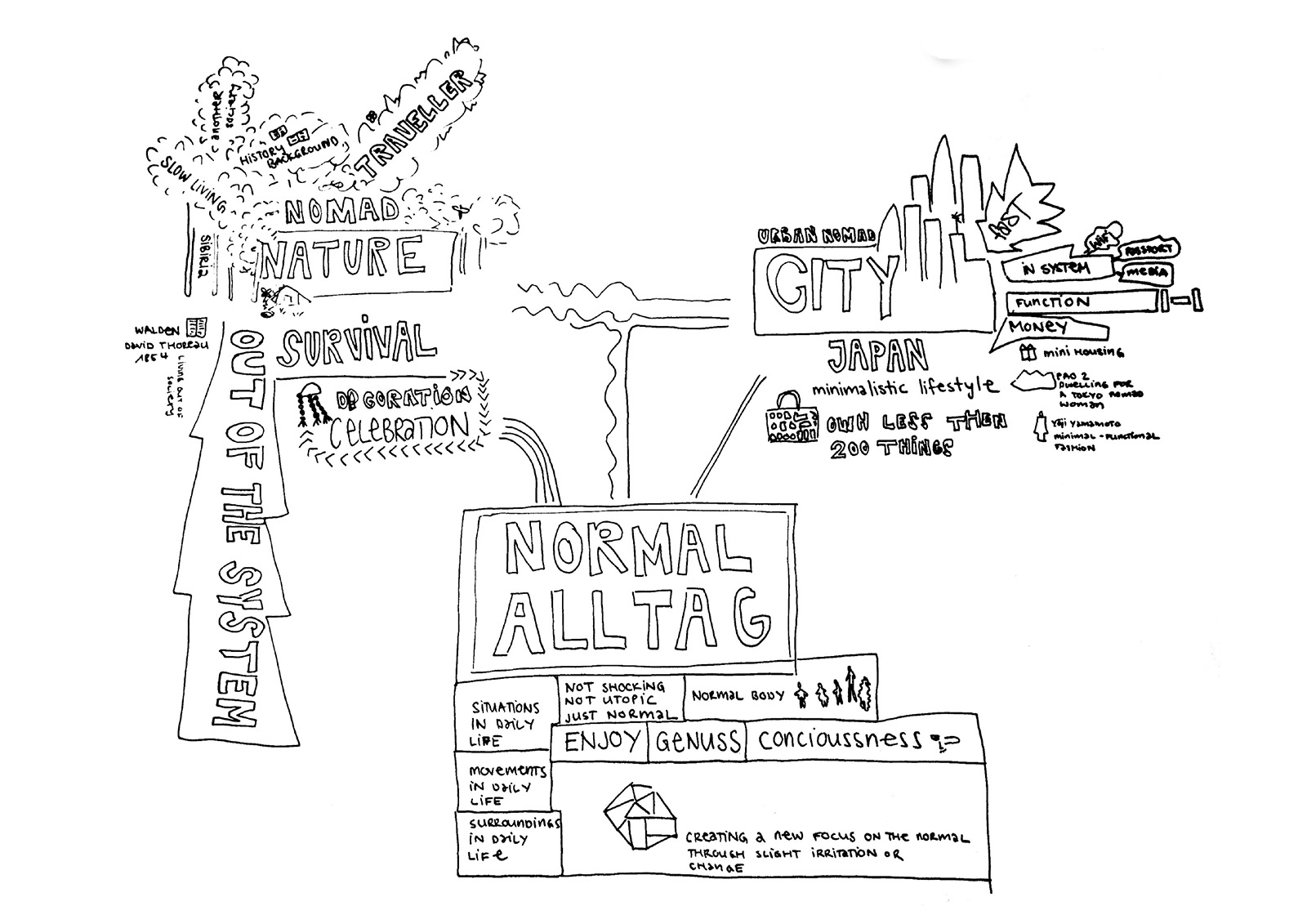 The pastiches of everyday objects and my own desire to break away from materialistic norms. This comes from my need to create more conscious understandings and systems. The overwhelming feeling of touching organic materials. This aspires to conceptual creations, the freedom of mind and the courage to live by your own needs and dreams. I am drawing out spontaneity and humour.