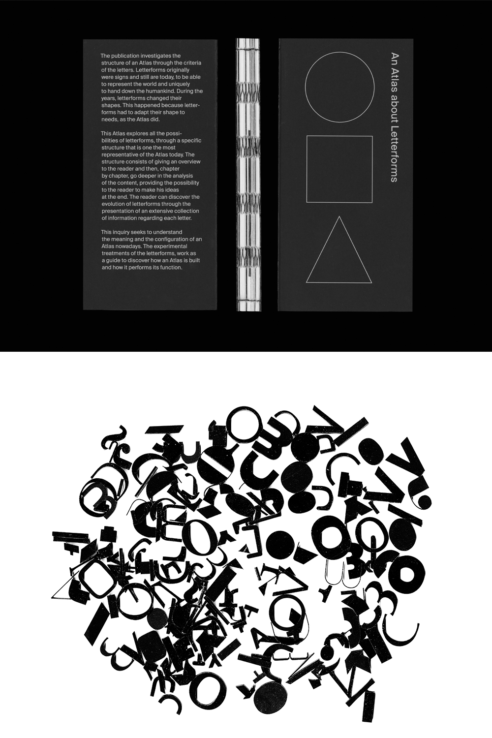 Was ist ein Atlas heutzutage? Die Beantwortung dieser Forschungsfrage führte mich durch den Prozess meiner Master-Thesis. Ich habe versucht herauszufinden, was einen Atlas ausmacht. Der Begriff wird heutzutage sehr breit genutzt und scheint über die Jahre seine klare Definition verloren zu haben. Das Resultat meiner Arbeit ist eine Publikation mit dem Titel «An Atlas about Letterforms», in welchem ich das Format des Atlas im Rahmen einer Auseinandersetzung mit Schriftformen untersuche.