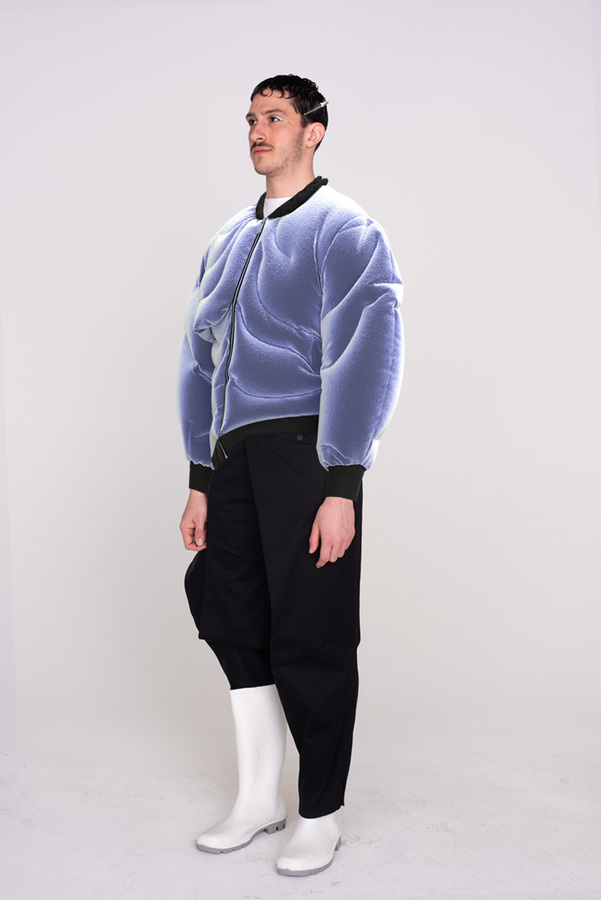 It is precisely at the interface that Collective MVS works, which consists of Andreas Belser and Florian Kech. They understand the transitions between these two worlds as fluid states, as the reality of a way of life that is becoming more and more self-evident and is also perceived as such. Collective MVS investigate the perception of digital and analog clothing / fashion, creating an actual virtual reality.