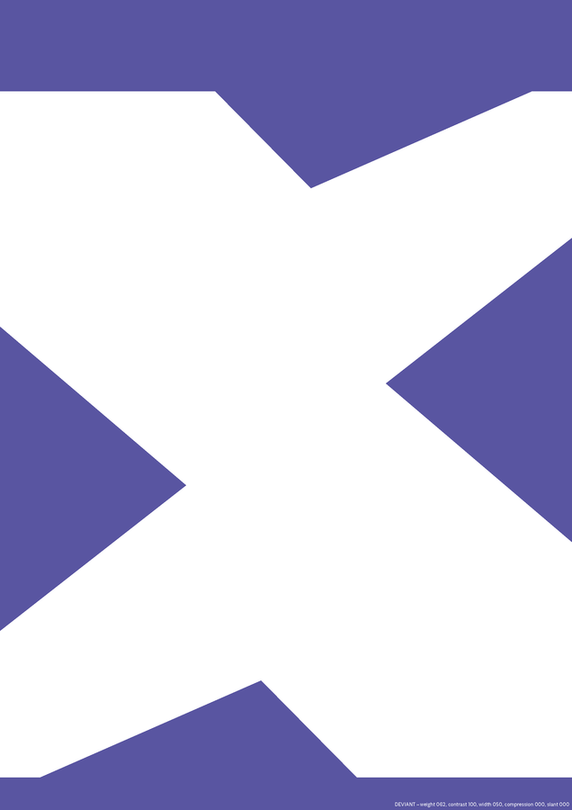 Ein Raster steht für das System, die darin gestaltete Schrift passt sich dem Raster an, ist konform. In sieben variablen Schriftschnitten wird das Raster dann zurückgelassen, die variable Schrift wird zum Ausdruck der Fluidität, zur Handlungsaufforderung.